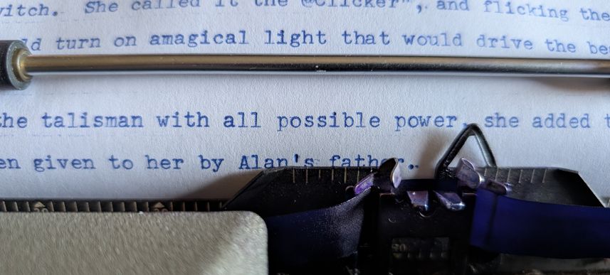 I want the font color to be Blue. I currently have a purple ribbon loaded, so that needs to come out. The gloves I wear are wet purple, making it look like I tried to strangle a grape monster with my bare hands after I've wound the stuff in the machine onto the reel.